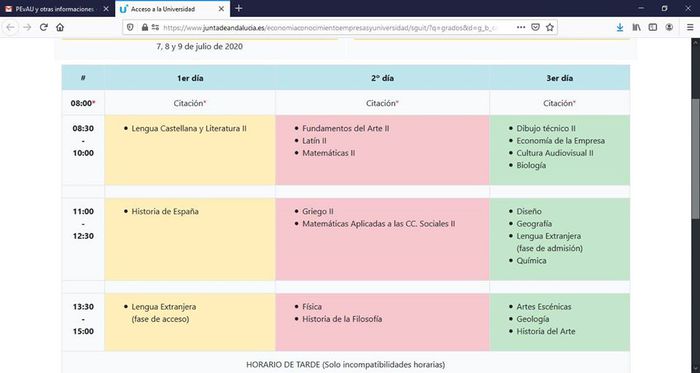 - Convocatoria ordinaria de la PEvAU: del 7 al 9 de julio de 2020.