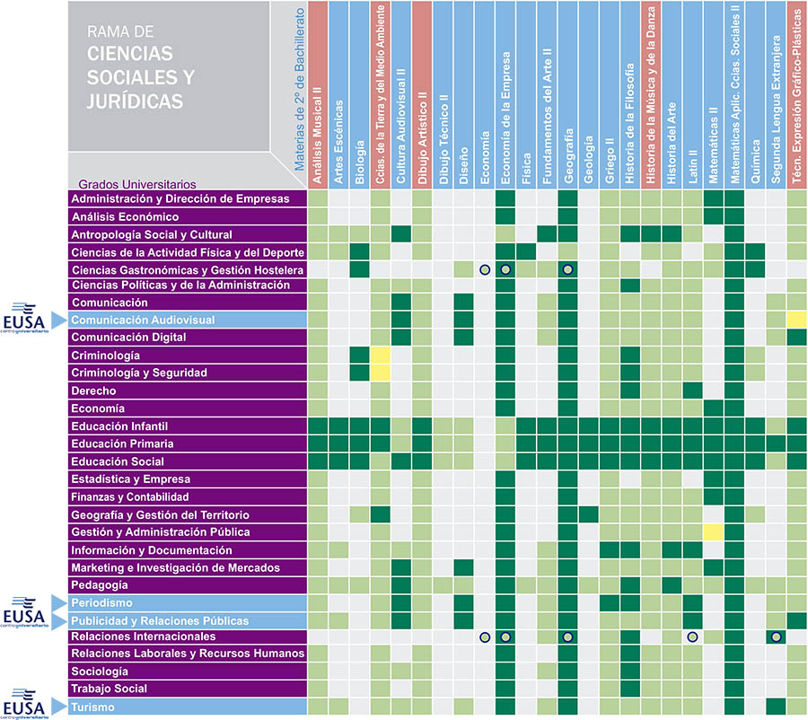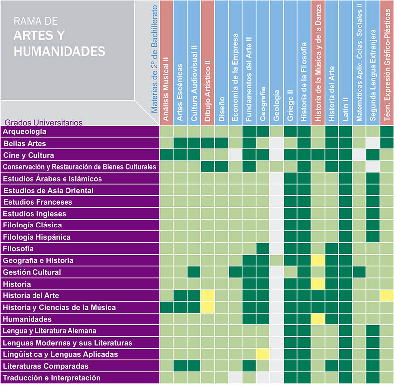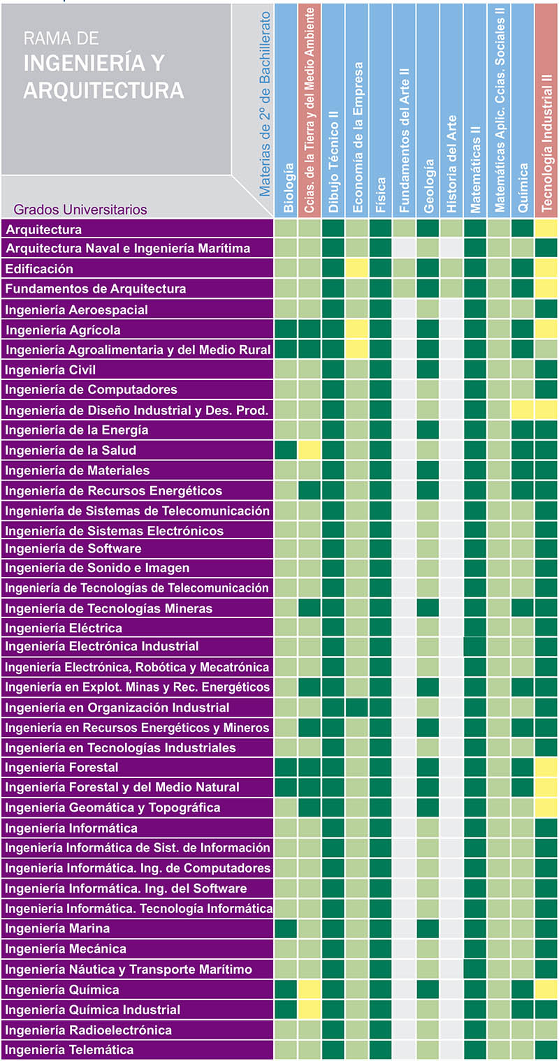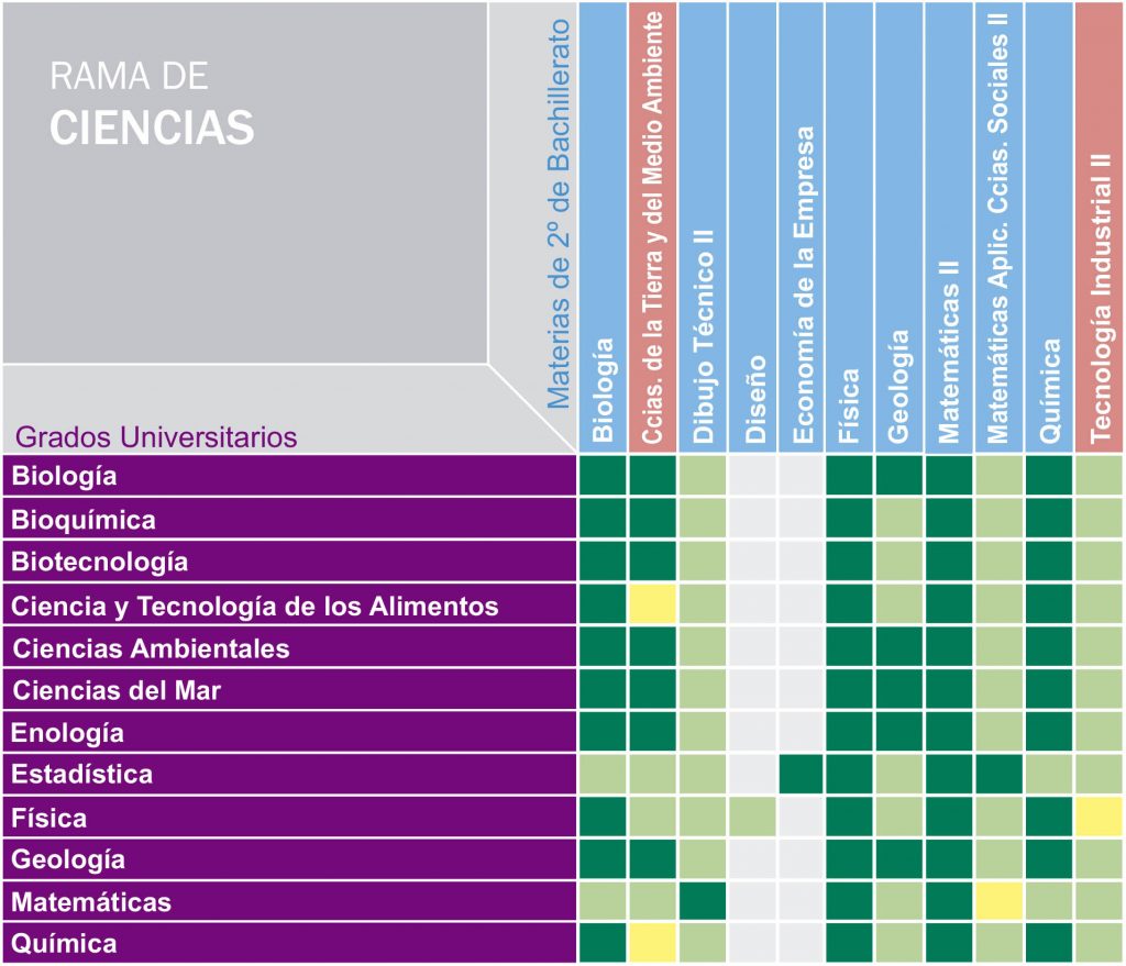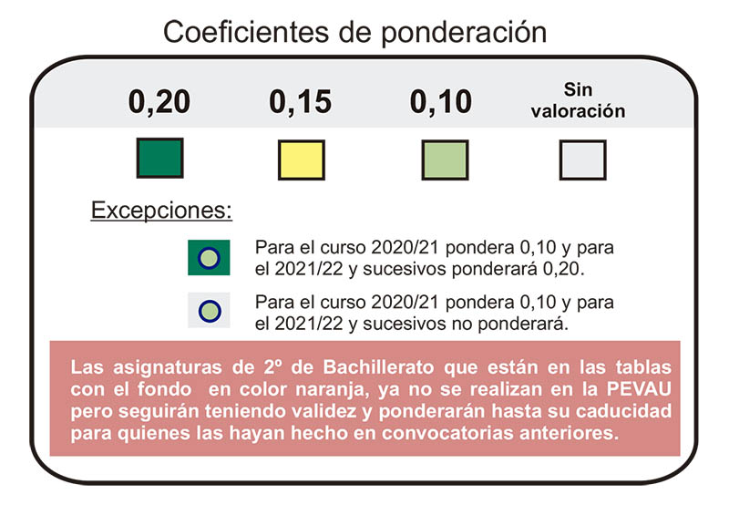En estos cuadros puedes conocer el valor que tiene para cada carrera universitaria las materias de 2º Bachillerato de las que te puedes examinar en la FASE DE ADMISIÓN. Esta parte de las pruebas de acceso a la universidad es voluntaria y sirve para subir nota, un máximo de 4 puntos.